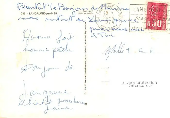 Langrune-sur-Mer Plage à l'heure du bain Place du 6 Juin Promenade Langrune-sur-Mer postalisch gelaufen 1974 Erhaltung siehe scans [FriedD77] Frierer