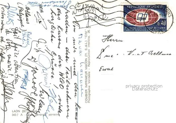 Laon_02_Aisne Vue générale aérienne Cathédrale postalisch gelaufen 1967 Erhaltung siehe scans [FriedD77] Frierer