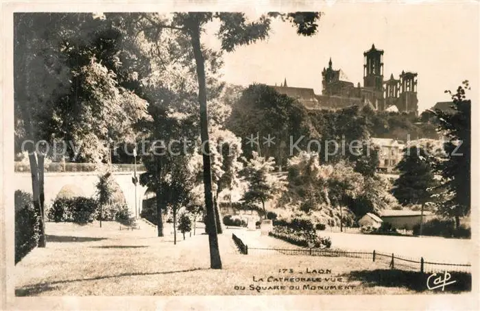 AK / Ansichtskarte Laon_Aisne La Cathedrala vue au Square au Monument Laon_Aisne