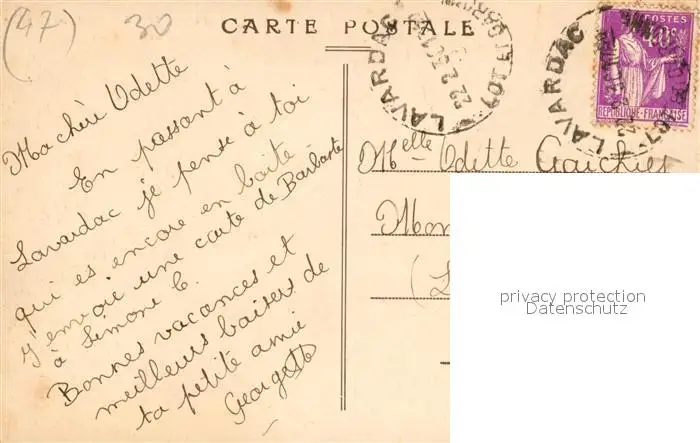 Lavardac Châtelet Lavardac postalisch gelaufen 1930 Erhaltung siehe scans [FriedD77] Frierer