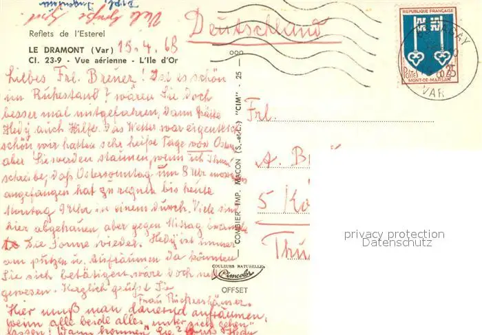 Le_Dramont Ile d Or vue aérienne Reflets de l Esterel Le_Dramont postalisch gelaufen 1968 Erhaltung siehe scans [FriedD77] Frierer