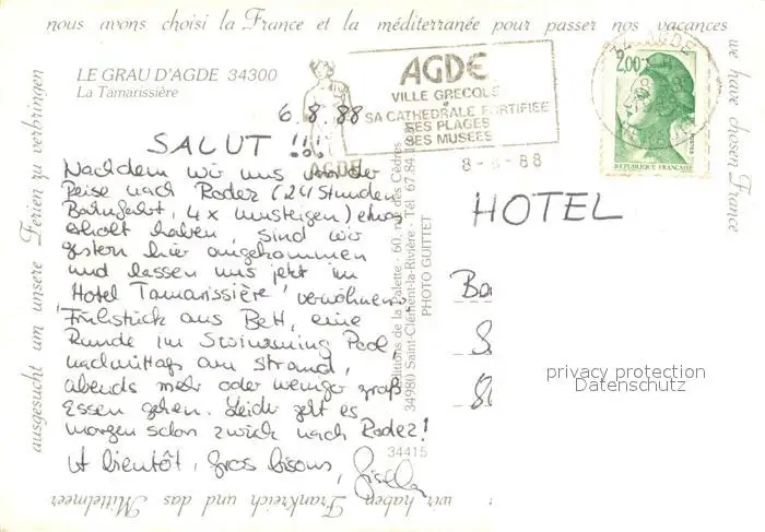 Le_Grau_d_Agde Vue aerienne Le_Grau_d_Agde postalisch gelaufen 1988 Erhaltung siehe scans [WerneD78] WernPID7