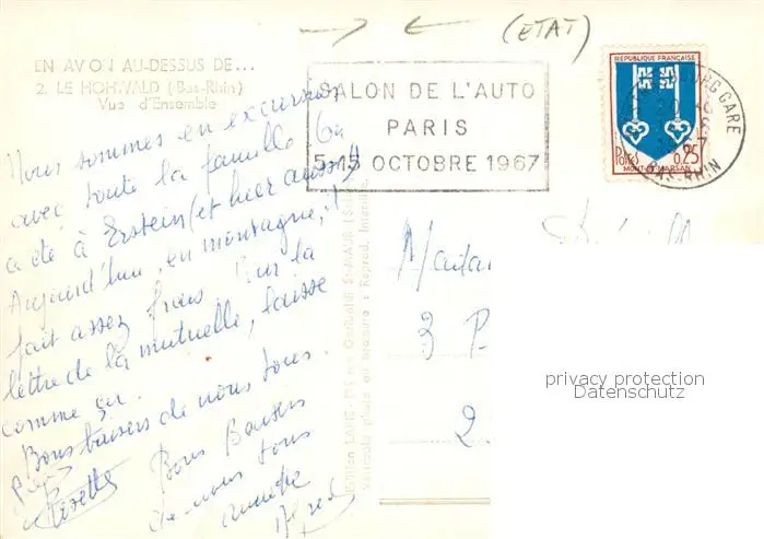 Le_Hohwald Vue d ensemble aérienne Le_Hohwald postalisch gelaufen 1967 Fliegeraufnahme Erhaltung siehe scans [FriedD77] Fliegeraufnahme Frierer