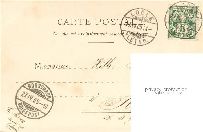 Le_Locle_NE Haut du Village postalisch gelaufen 1905 Erhaltung siehe scans [FriedD77] Frierer
