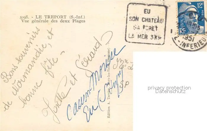 Le_Treport Vue générale des deux plages Le_Treport postalisch gelaufen 1951 Erhaltung siehe scans [FriedD77] Frierer