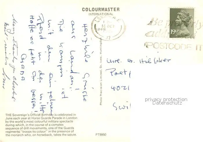 Leibgarde_Wache Trooping the Colour Horse Guards Parade London Leibgarde Wache postalisch gelaufen nach 1965 Erhaltung siehe scans [PaolaD17] PaolPID1