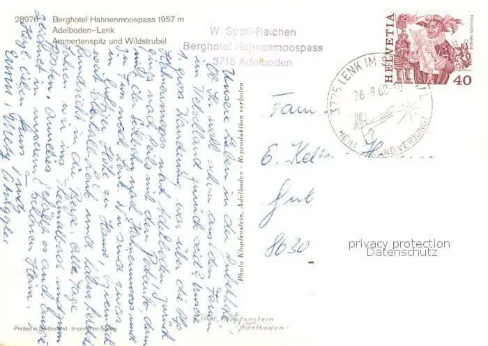 Lenk_Simmental Hotel Hahnenmoospass Lenk Simmental postalisch gelaufen 1968 Erhaltung siehe scans [KathaD81] Kathoren