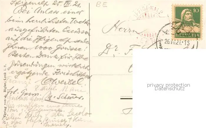 Lenk_Simmental Ifigenalp Viehweide Kuehe Lenk Simmental postalisch gelaufen 1921 Erhaltung siehe scans [FriedD77] Frierer