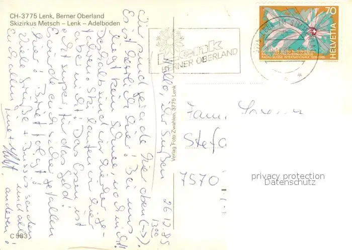 Lenk_Simmental Skizirkus Metsch Lenk Adelboden Seilbahn Terrasse Lenk Simmental postalisch gelaufen 1985 Erhaltung siehe scans [WerneD78] WernPID7