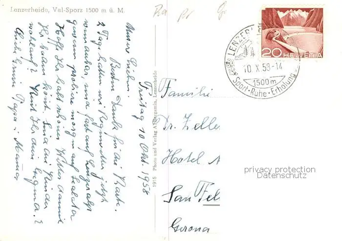 Lenzerheide_GR Val Sporz Lenzerheide GR postalisch gelaufen 1958 Erhaltung siehe scans [WerneD78] WernPID7