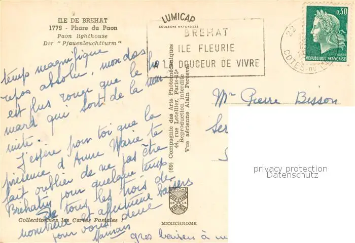 Leuchtturm Iris 1719 Ile de Brehat Leuchtturm postalisch gelaufen nach 1965 Erhaltung siehe scans [IrynaD87] Iryn PID