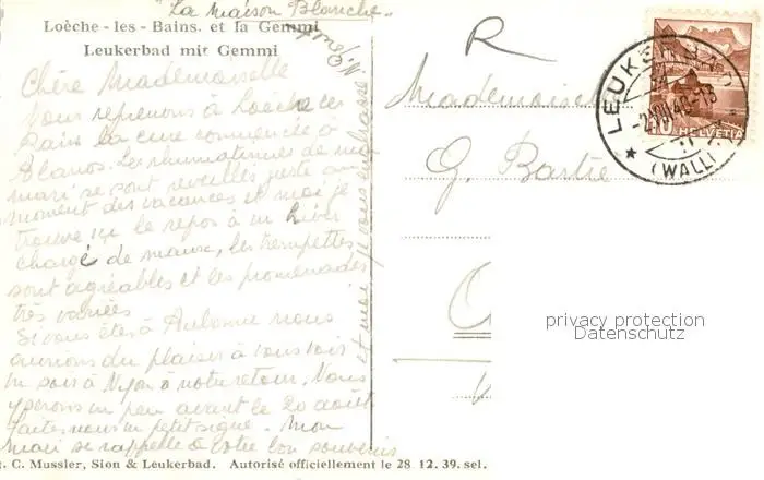 Leukerbad_Loueche-les-Bains_VS mit Gemmi postalisch gelaufen 1940 Erhaltung siehe scans [WerneD78] WernPID7