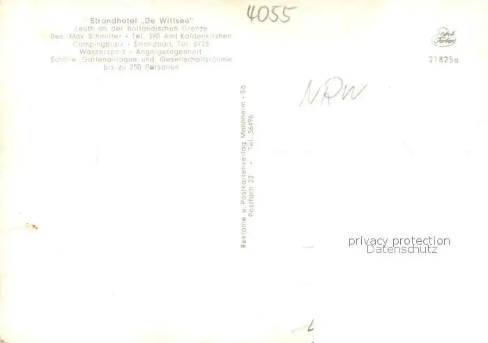 Leuth Strandhotel De Wittsee Leuth postalisch nicht gelaufen 1921-1965 Erhaltung siehe scans [LiesaD40] LiesID40