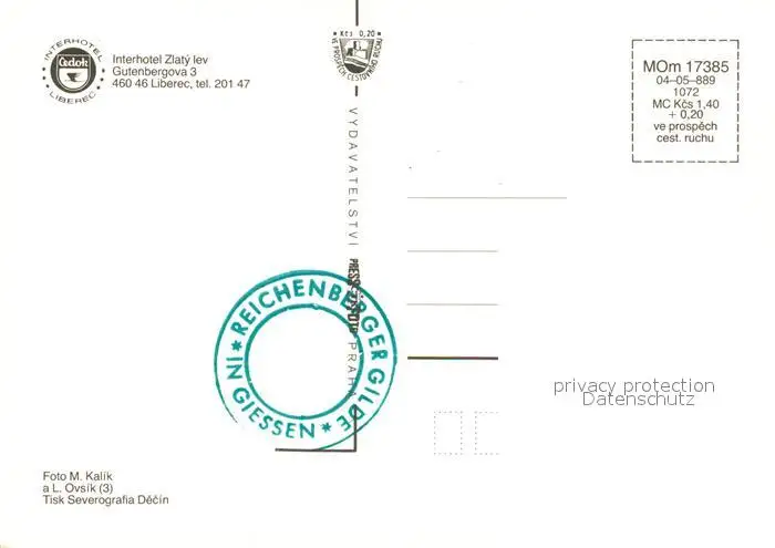 Liberec Interhotel Zlaty lev Restaurant Bar Liberec postalisch nicht gelaufen nach 1965 Erhaltung siehe scans [FriedD77] Frierer