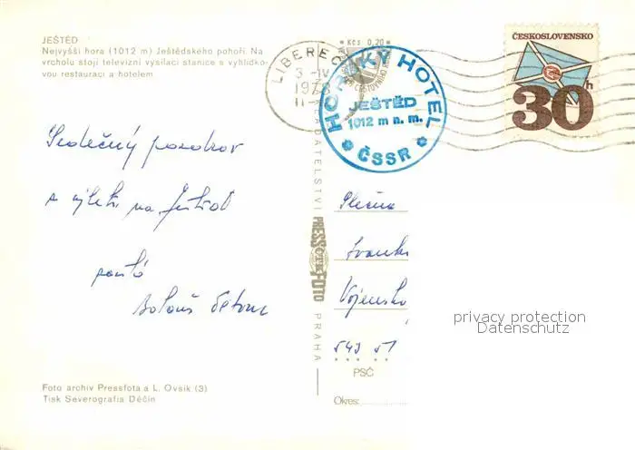 Liberec Jested Turmrestaurant Liberec postalisch gelaufen nach 1965 Erhaltung siehe scans [FriedD77] Frierer