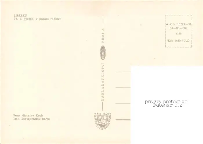 Liberec Tr. 5. kvena v pozadi radnice Liberec postalisch nicht gelaufen nach 1965 Erhaltung siehe scans [FriedD77] Frierer