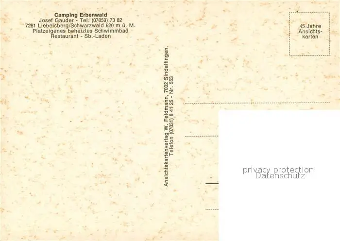 Liebelsberg_Neubulach Camping Erbenwald im Schwarzwald postalisch nicht gelaufen nach 1965 Fliegeraufnahme Erhaltung siehe scans [FriedD77] Fliegeraufnahme Frierer
