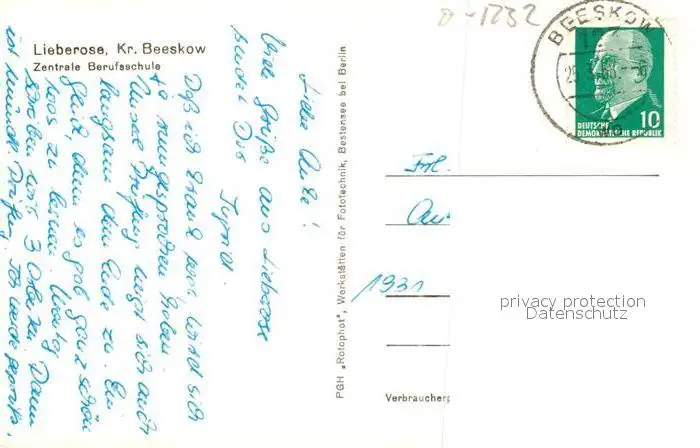 Lieberose Zentrale Berufsschule Lieberose postalisch gelaufen 1968 Erhaltung siehe scans [KathaD81] Kathoren