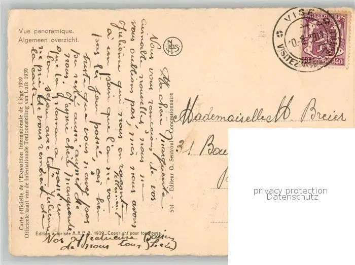 Liege_Luettich Vue panoramique Liege Luettich postalisch gelaufen 1939 Erhaltung siehe scans [WerneD78] WernPID7