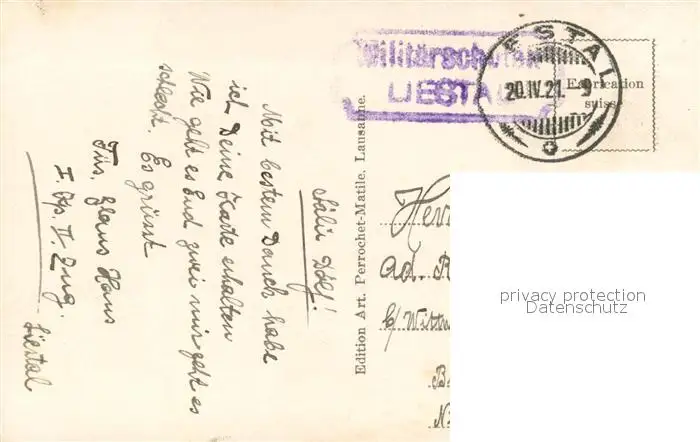 Liestal_BL Kaserne postalisch gelaufen 1921 Erhaltung siehe scans [WerneD78] WernPID7