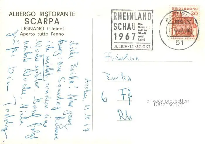 Lignano_IT Albergo Ristorante Scarpa postalisch gelaufen 1967 Erhaltung siehe scans [WerneD78] WernPID7