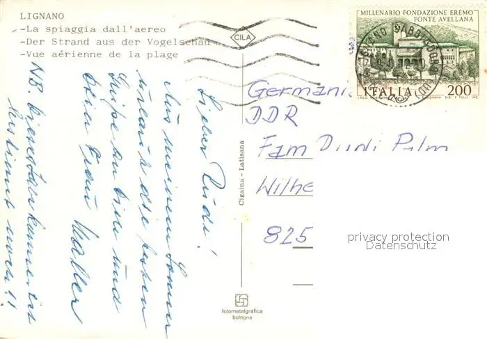 Lignano_IT Fliegeraufnahme Strand postalisch gelaufen 1982 Erhaltung siehe scans [LiesaD40] LiesID40