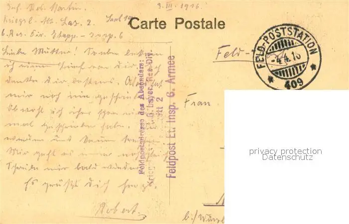 Lille_Nord Musée Museum Lille_Nord postalisch gelaufen 1916 Feldpoststation (Stempel) Erhaltung siehe scans [FriedD77] Feldpoststation (Stempel) Frierer