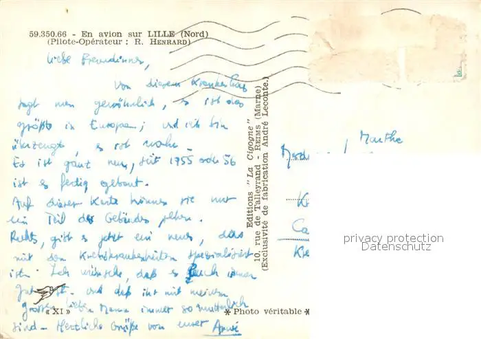 Lille_Nord Vue aerienne Lille_Nord postalisch gelaufen nach 1965 Erhaltung siehe scans [WerneD78] WernPID7