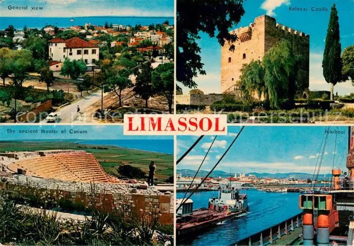 AK / Ansichtskarte Limassol General view Ancient theater of Corium Kolossi Castle Harbour Limassol