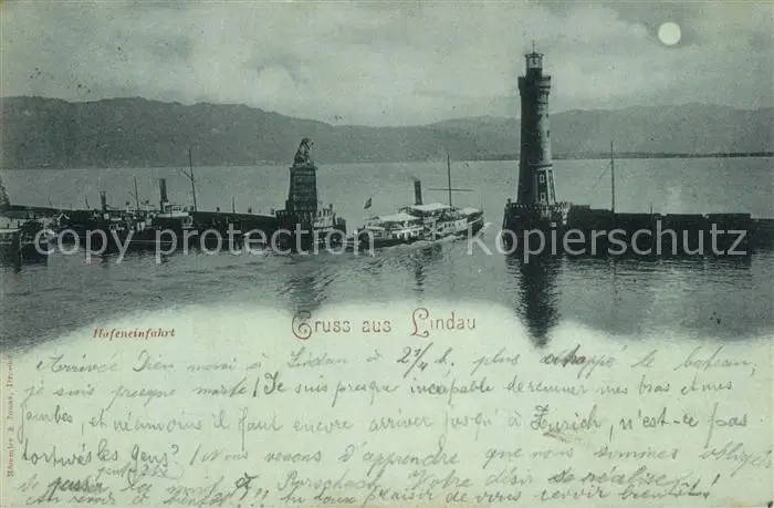 Lindau_Bodensee Hafeneinfahrt Mondschein Lindau Bodensee postalisch gelaufen 1898 Erhaltung siehe scans [KathaD81] Kathoren