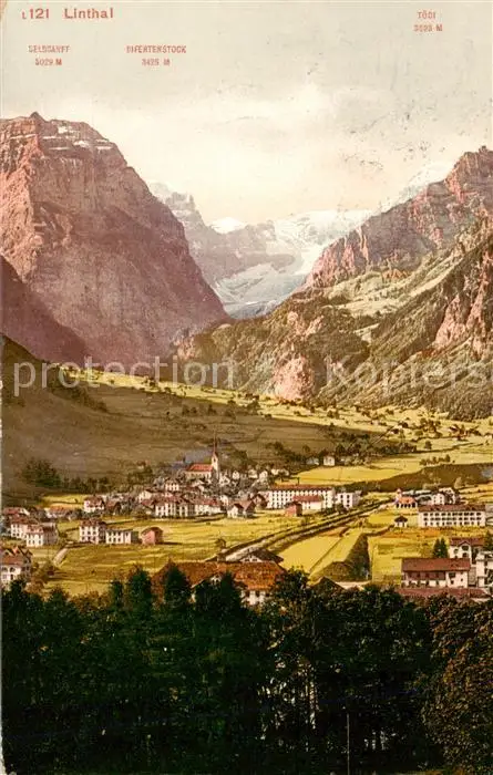 Linthal__GL Panorama postalisch gelaufen 1913 Erhaltung siehe scans [FriedD77] Frierer