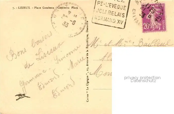 Lisieux Place Gambetta Lisieux postalisch gelaufen 1933 Erhaltung siehe scans [WerneD78] WernPID7