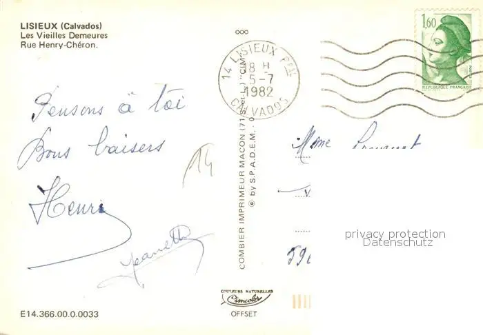 Lisieux Rue Henry Cheron Lisieux postalisch gelaufen 1982 Erhaltung siehe scans [KathaD81] Kathoren