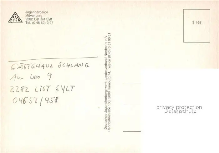 List_Sylt Jugendherberge Moevenberg List_Sylt postalisch nicht gelaufen nach 1965 Erhaltung siehe scans [WerneD78] WernPID7