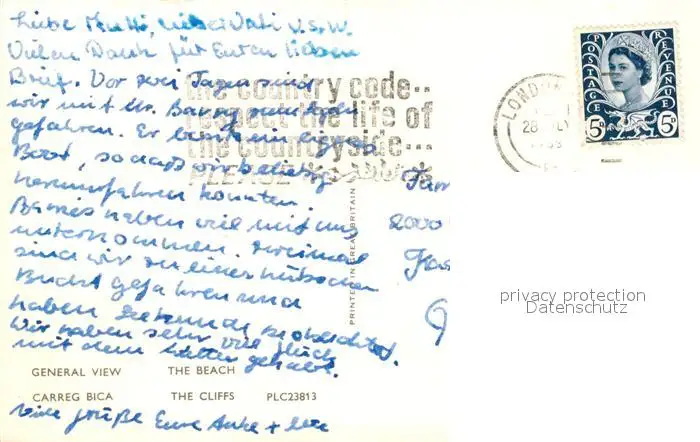 Llangranog General view Beach Carreg Bica Cliffs postalisch gelaufen nach 1965 Erhaltung siehe scans [FriedD77] Frierer