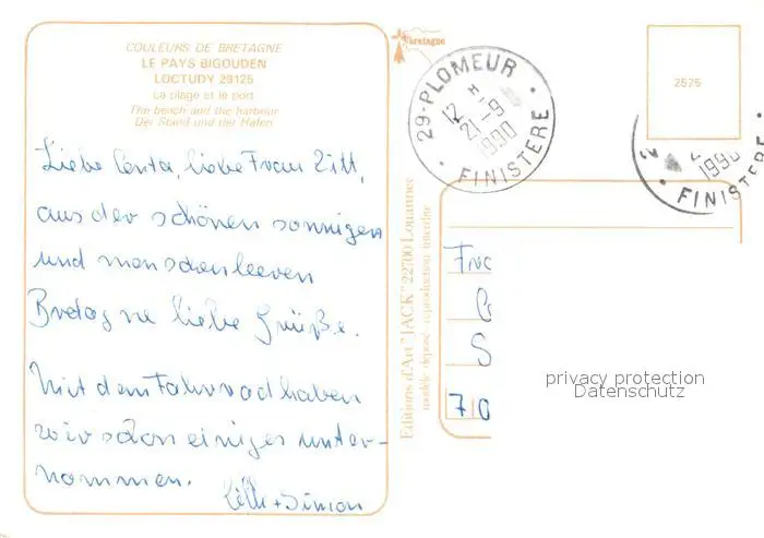 Loctudy La plage et le port vue aérienne Loctudy postalisch gelaufen 1990 Erhaltung siehe scans [FriedD77] Frierer