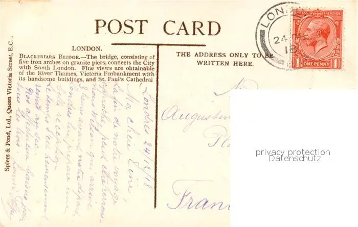 London Blackfriars Bridge London postalisch gelaufen 1918 Erhaltung siehe scans [WerneD78] WernPID7