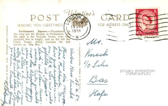 London Parliament Square London postalisch gelaufen 1954 Erhaltung siehe scans [KathaD81] Kathoren