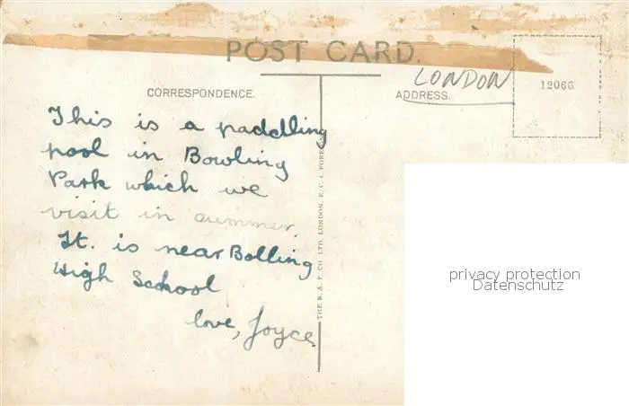 London__UK Paddling Pool - Bowling Park postalisch nicht gelaufen 1921-1965 Erhaltung siehe scans [LiesaD40] LiesID40
