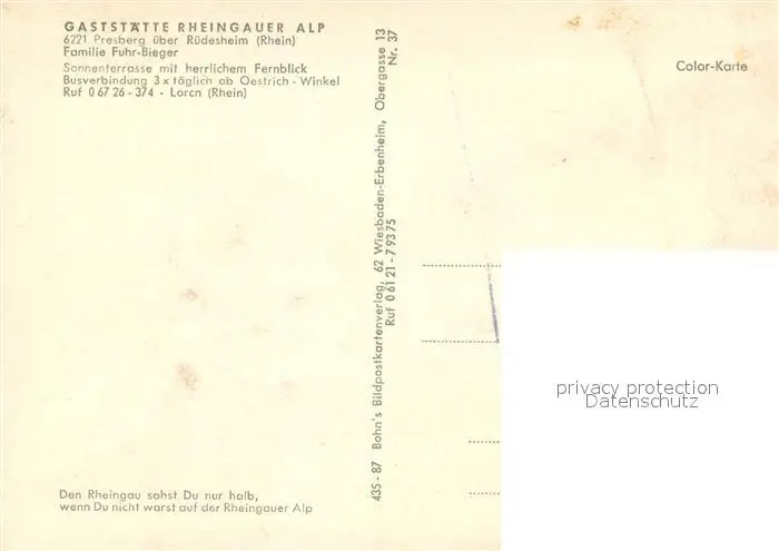 Lorch_Rheingau Restaurant Rheingauer Alp Lorch Rheingau postalisch nicht gelaufen nach 1965 Erhaltung siehe scans [LiesaD40] LiesID40
