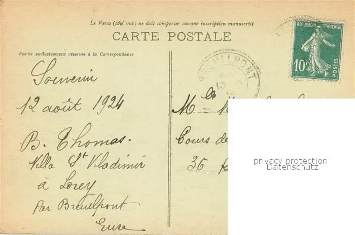Lorey_Eure Pont et vue sur la colline postalisch gelaufen 1924 Erhaltung siehe scans [FriedD77] Frierer