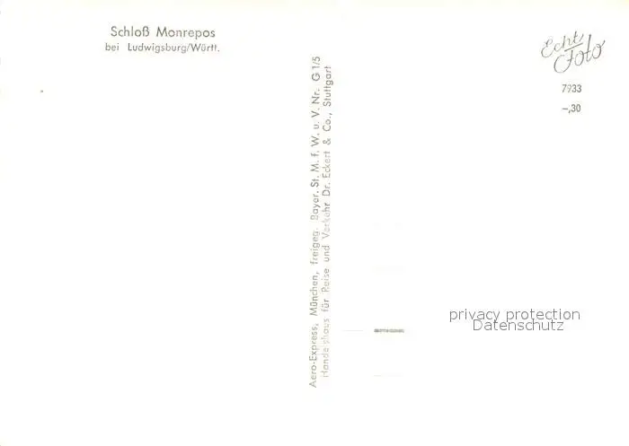Ludwigsburg__Wuerttemberg Schloss Monrepos postalisch nicht gelaufen nach 1965 Fliegeraufnahme Erhaltung siehe scans [FriedD77] Fliegeraufnahme Frierer