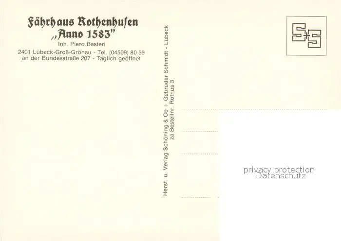 Luebeck Fliegeraufnahme Faehrhaus Rothenhusen Luebeck postalisch nicht gelaufen nach 1965 Erhaltung siehe scans [LiesaD40] LiesID40
