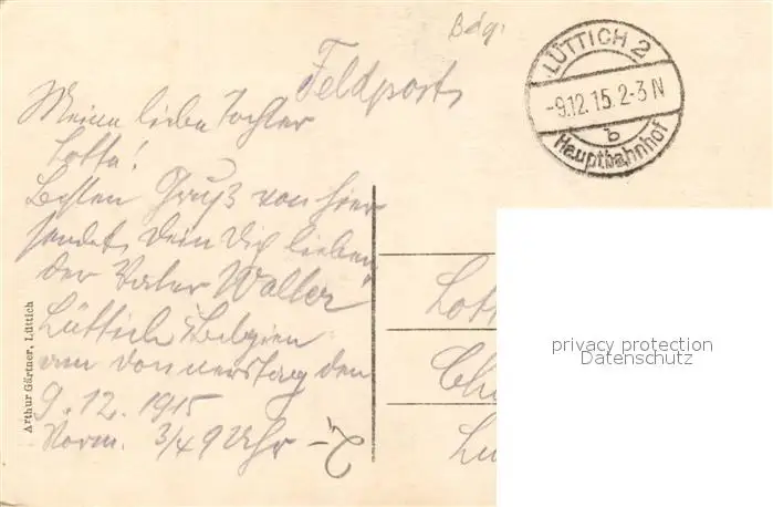 Luettich Monument Rogier Luettich postalisch gelaufen 1915 Feldpost - Stempel Erhaltung siehe scans [WerneD78] Feldpost - Stempel WernPID7