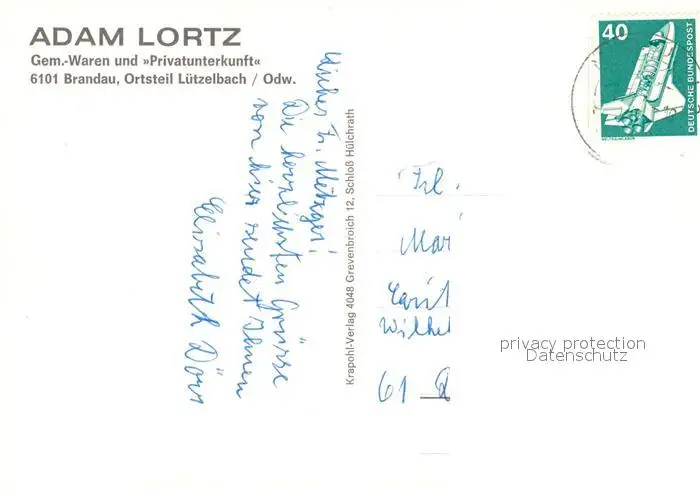 Luetzelbach Modautal Kategorie Alte Ansichtskarten Postkarten bx50638 Luetzelbach_Modautal Adam Lortz Luetzelbach Modautal postalisch gelaufen nach 1965 Erhaltung siehe scans [NatalD47]