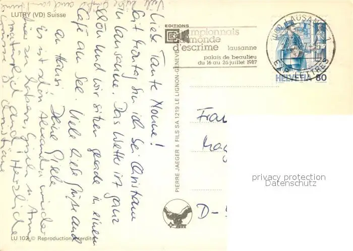 Lutry Vue aerienne Lutry postalisch gelaufen 1987 Erhaltung siehe scans [WerneD78] WernPID7