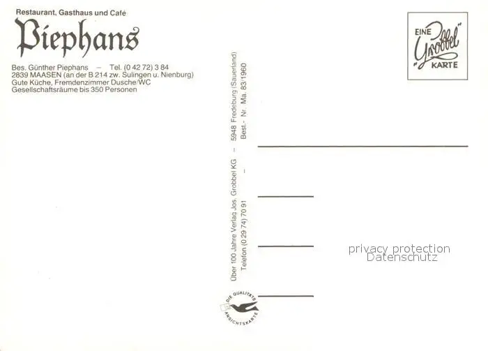 Maasen Restaurant Café Piephans Kegelbahn Maasen postalisch nicht gelaufen nach 1965 Erhaltung siehe scans [LiesaD40] LiesID40