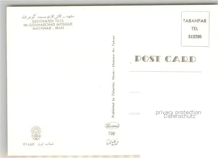 Machhad Decorated Tiles in Gouharchad Mosque postalisch nicht gelaufen nach 1965 Erhaltung siehe scans [WerneD78] WernPID7