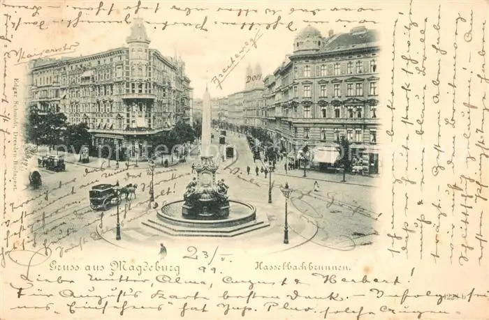 Magdeburg Hasselbachbrunnen Magdeburg postalisch gelaufen 1899 Erhaltung siehe scans [LiesaD40] LiesID40