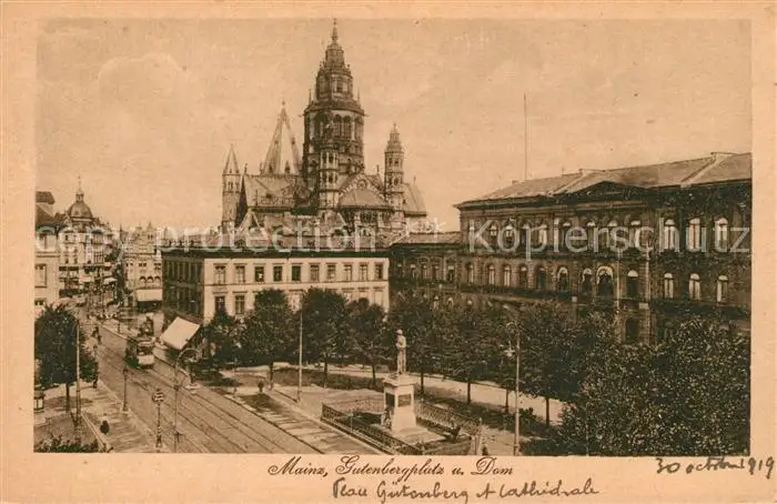 Mainz_Rhein Gutenbergplatz Denkmal Dom Mainz Rhein postalisch nicht gelaufen 1921-1965 Erhaltung siehe scans [FriedD77] Frierer